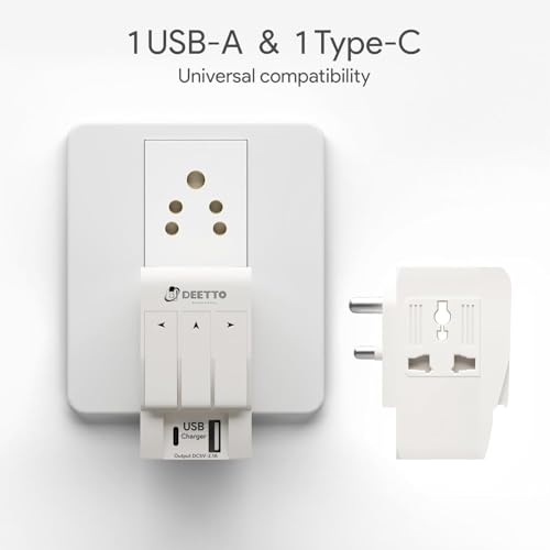 Ceptics Travel Adapter India to Europe, USA, UK, Australia, Africa, Chile, Italy, UAE & World Travel Plug Adapter, Safe Compact & Powerful USB Adapter (Universal Travel Adapter with Type C, 3-Pack)