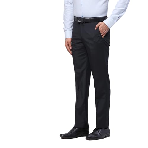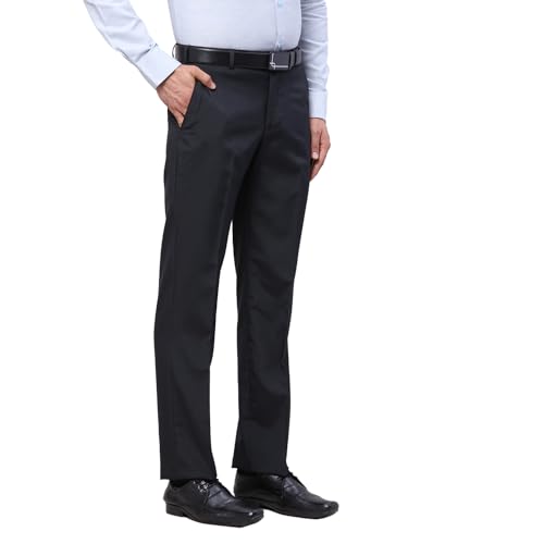 Park Avenue Men's Poly Rayon Blend Solid Pattern Smart Fit Flat Front Formal Trouser