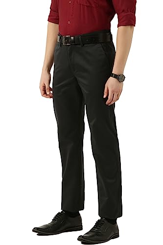 Park Avenue Men's Polyester Blend Structure Pattern Smart Fit Flat Front Formal Trouser
