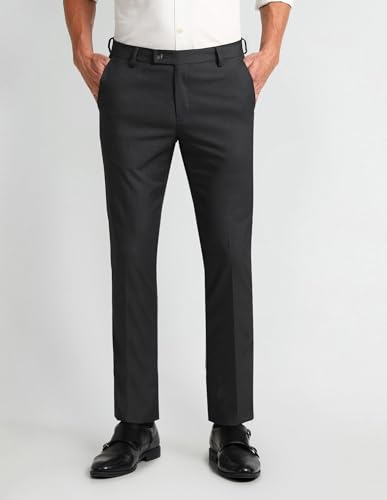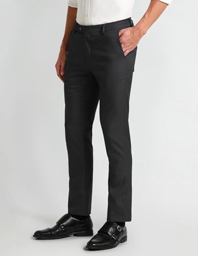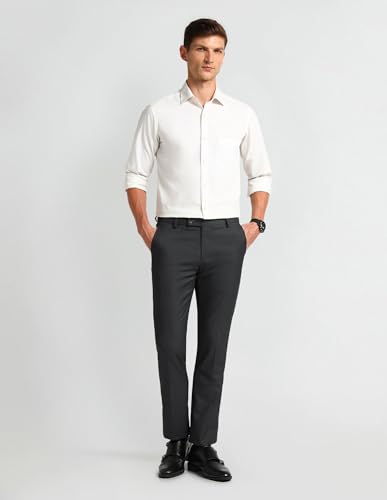 Arrow Men's Self-Designed Solid Tailored Fit Polyester Formal Trouser
