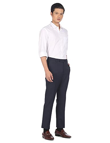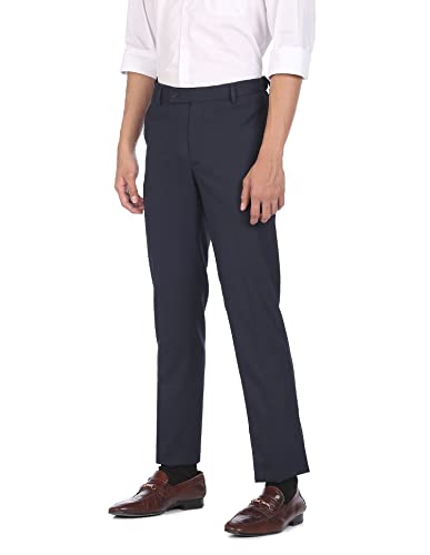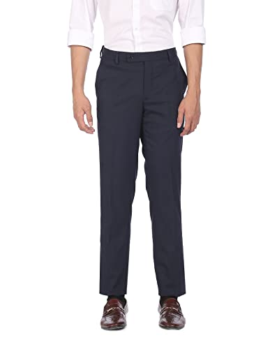 Park Avenue Men's Polyester Blend Checks Pattern Smart Fit Flat Front Formal Trouser