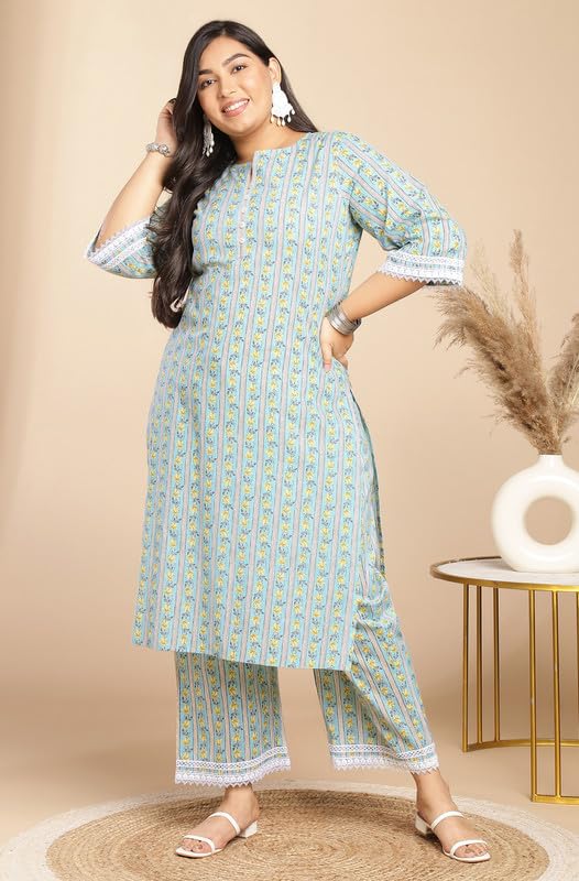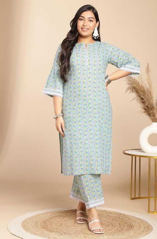 Janasya Women's Blue Cotton Bandhani Printed Co-Ord Set