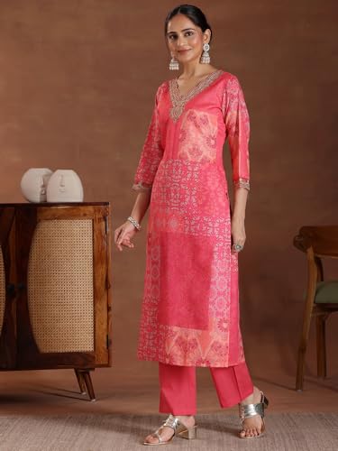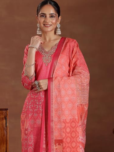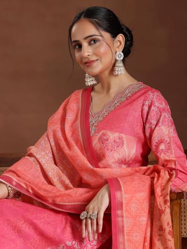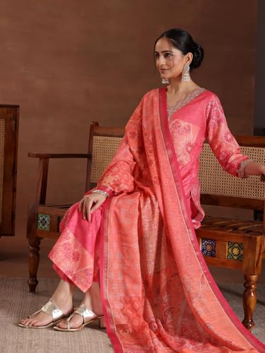 Libas Blue Printed Silk Blend Anarkali Kurta With Trousers & Dupatta