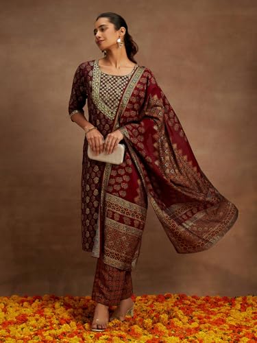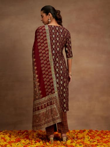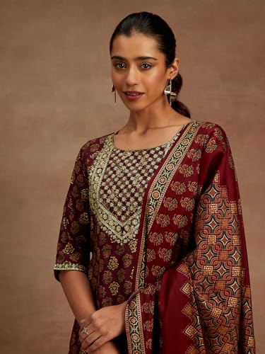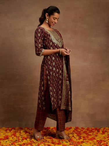 Libas Yellow Yoke Design Cotton Anarkali Kurta With Trousers & Dupatta