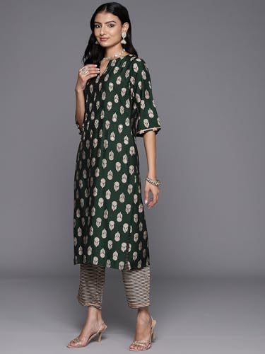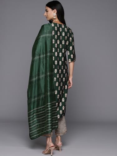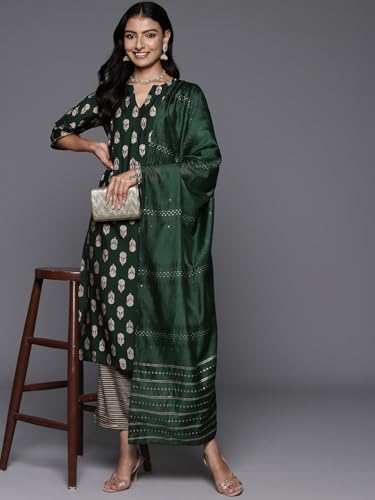 Libas White Printed Cotton A-Line Kurta With Salwar & Dupatta