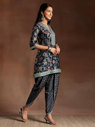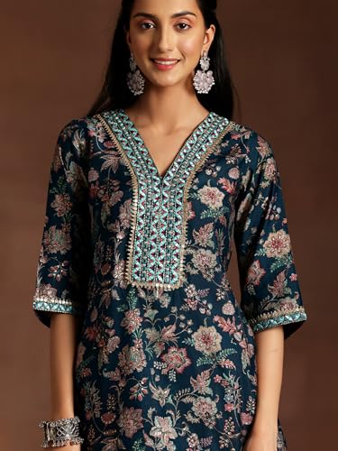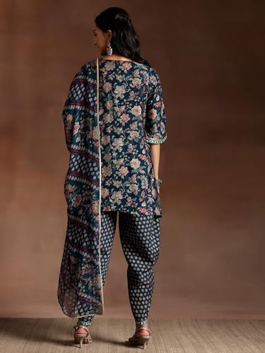 BIBA Polycotton Women Embroidery Straight Suit Set (SKDGOLDMUR9144_Black_S)