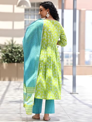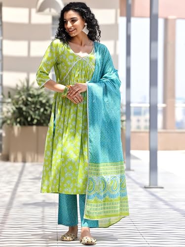 RAJMANDIRFABRICS Women's Cotton Hand Work Floral Printed Straight Kurta Pant With Dupatta Set