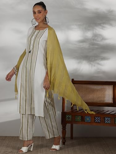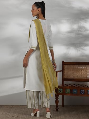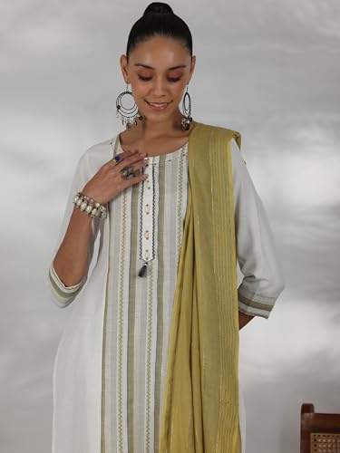 Miss Ethnik Women's Cream Chinon Stitched Top With Stitched Chinon Bottom and Chinon Dupatta Full Sleeve Embroidered Anarkali Kurta (ME-1191)