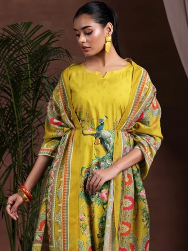 BIBA Womens Women Rayon Straight Suit Set(SKD7451E_Green_L)