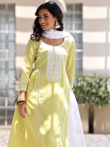 INDO ERA Women's Embroidered Silk Blend Floor Length A-Line Kurta & Pant With Dupatta Set (KH9GN9534)