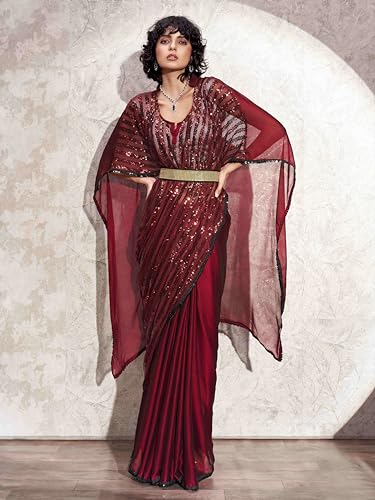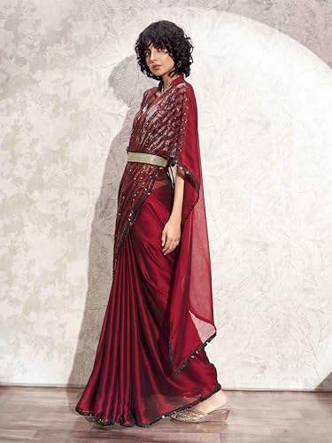 SIRIL Women's Chiffon Printed and Lace Boarder Saree With Unstitched Blouse Piece