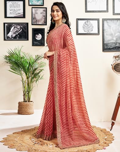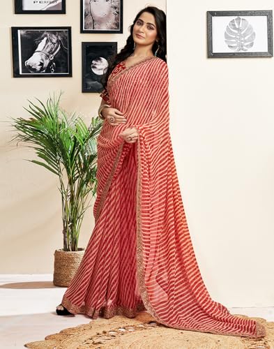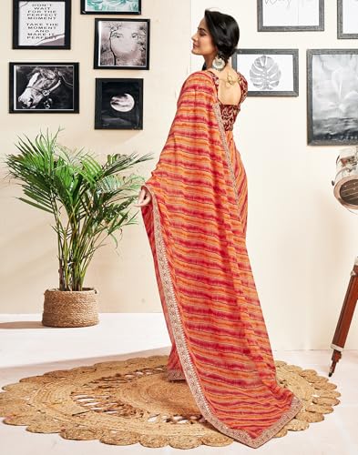 SIRIL Women's Georgette Printed Saree With Unstitched Blouse Piece Combo Pack Of 2