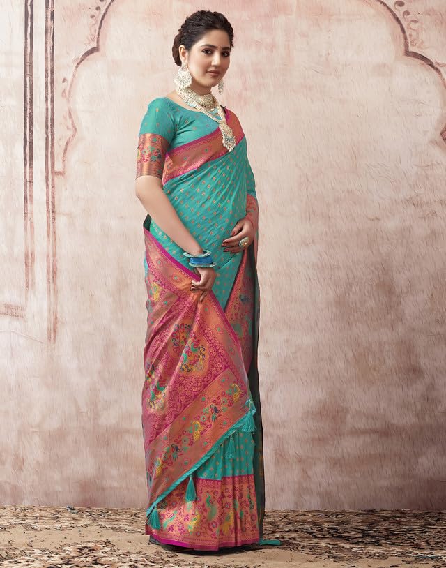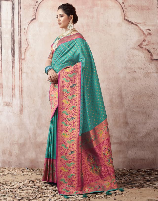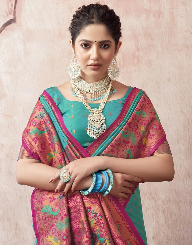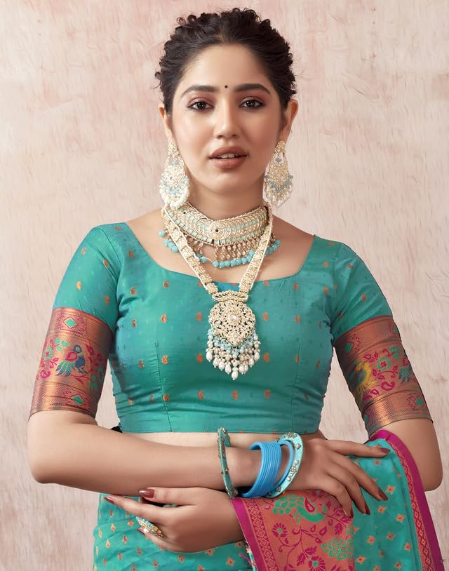 SIRIL Women's Cotton Blend Geometric Printed Saree With Unstitched Blouse Piece