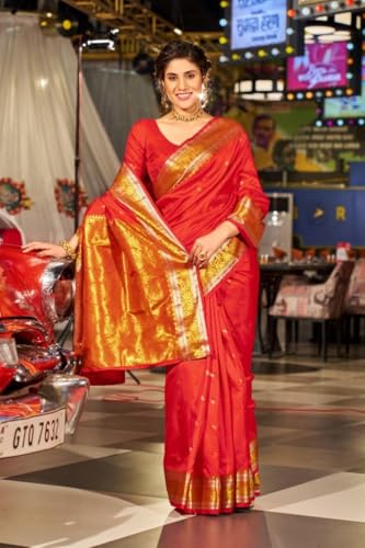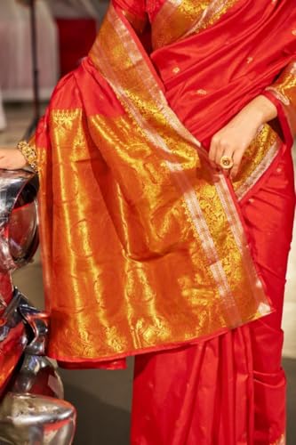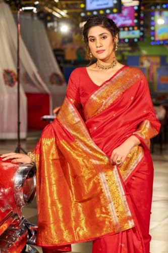 SIRIL Women's Banarasi Jacquard Organza Saree with Unstitched Blouse Piece