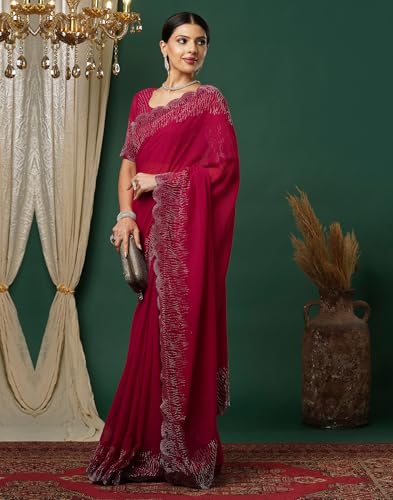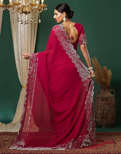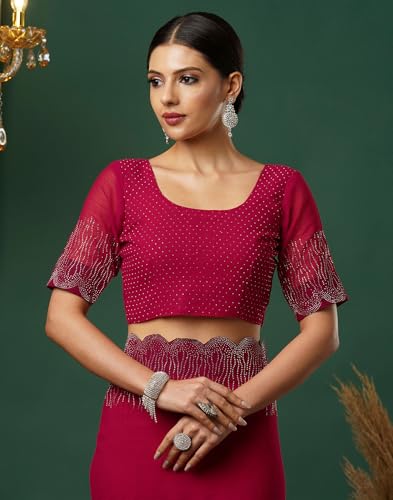 SIRIL Women's Georgette Printed Saree With Unstitched Blouse Piece Combo Pack Of 2