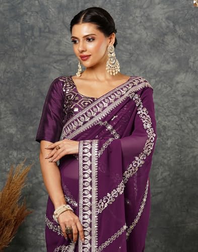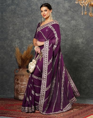 SWORNOF Women's & Girl's Kota Doria Cotton Saree With Blouse Piece