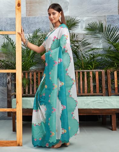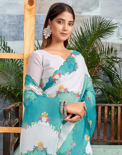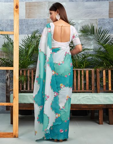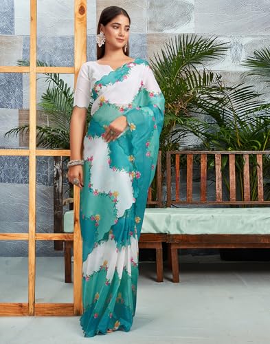 SIRIL Women's Pure Cotton Printed Saree With Unstitched Blouse Piece