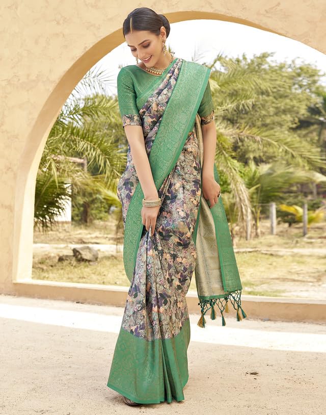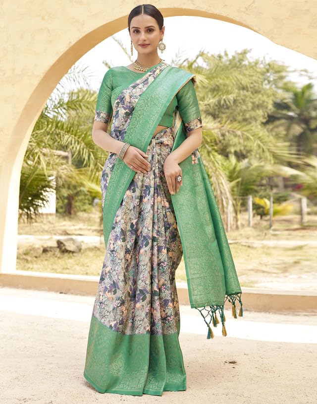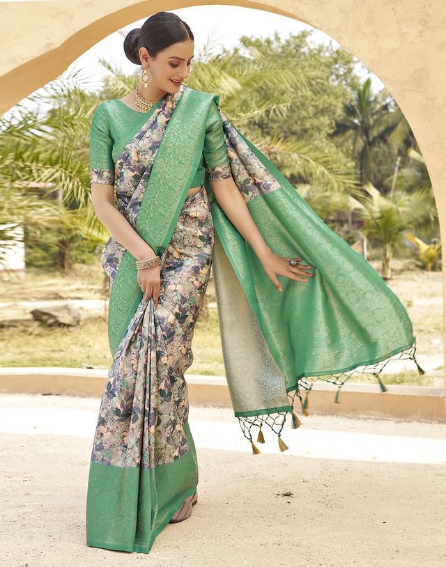 SIRIL Women's Georgette Printed Saree With Unstitched Blouse Piece Combo Pack Of 2