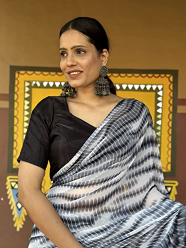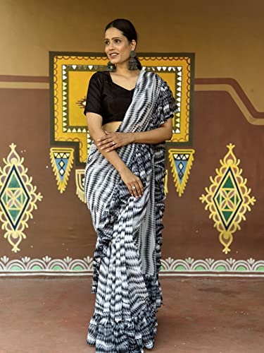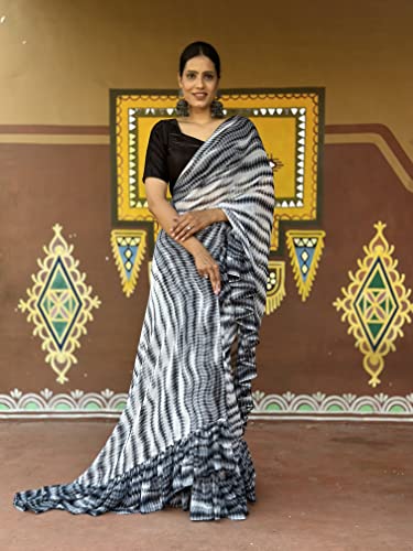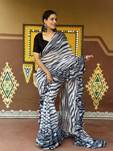 SIRIL Women's Hot Fixing Georgette Saree with Unstitched Blouse Piece