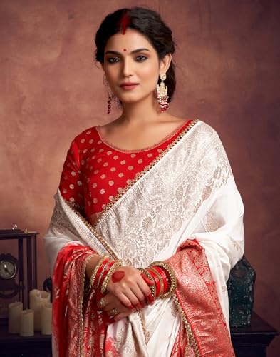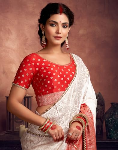 SWORNOF Womens Kanjivaram Silk Saree with Zari Woven Saree With Blouse Piece