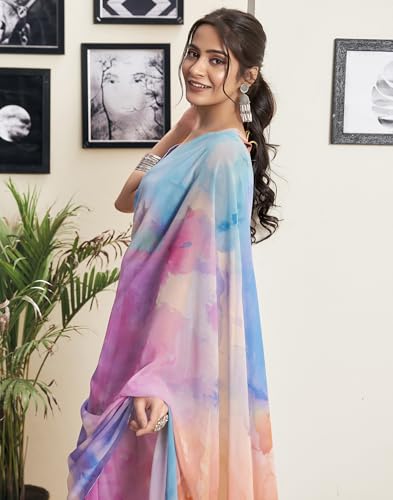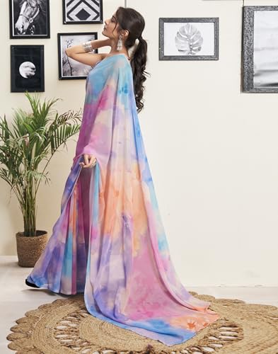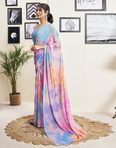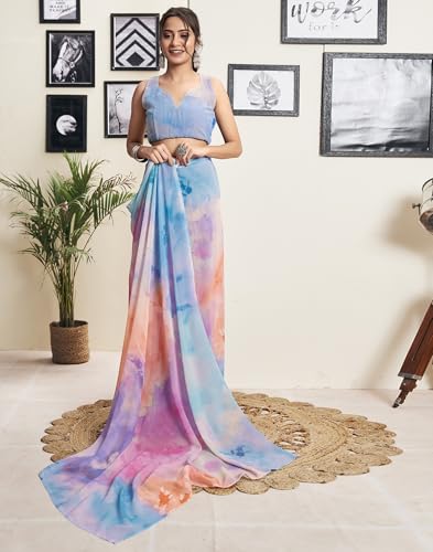 Womanista Women's Printed Georgette Ready to Wear Saree (TI_3360_Red)