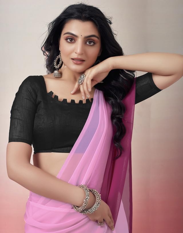 SIRIL Women's Jacquard Border, Printed Organza Saree with Unstitched Blouse