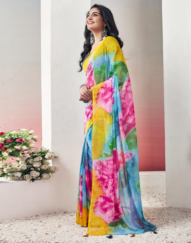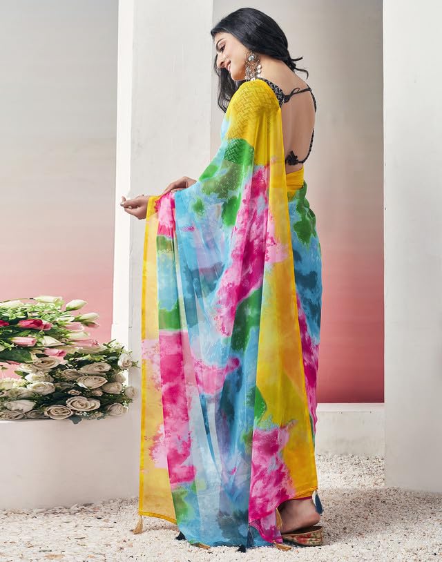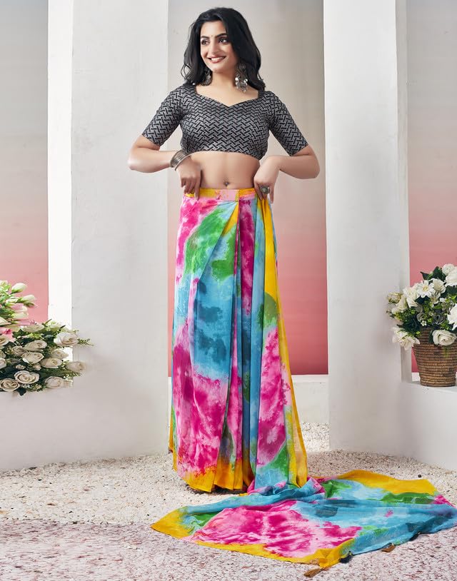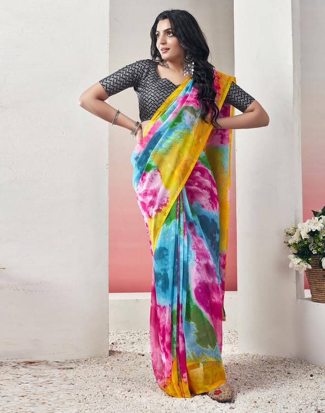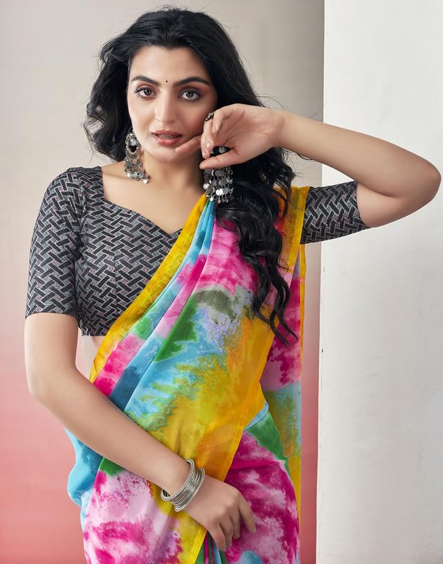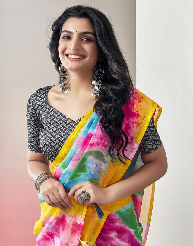 SIRIL Women's Dola Silk Foil Printed Saree With Unstitched Blouse Piece