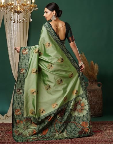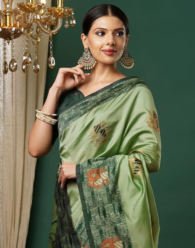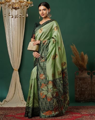 SIRIL Women's Floral Printed Silk Crepe Saree with Unstitched Blouse Piece