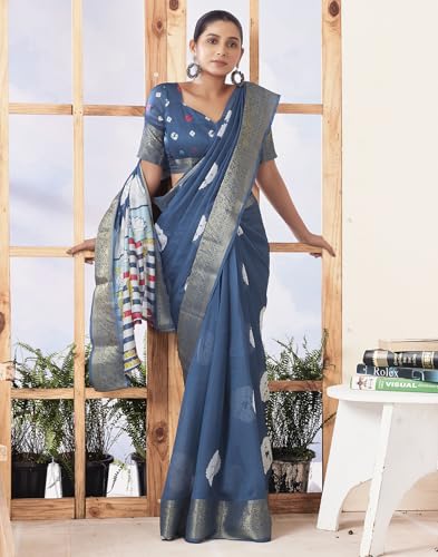 SIRIL Women's Georgette Printed Saree With Unstitched Blouse Piece Combo Pack Of 2
