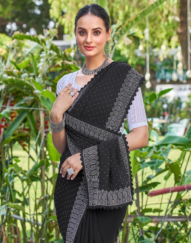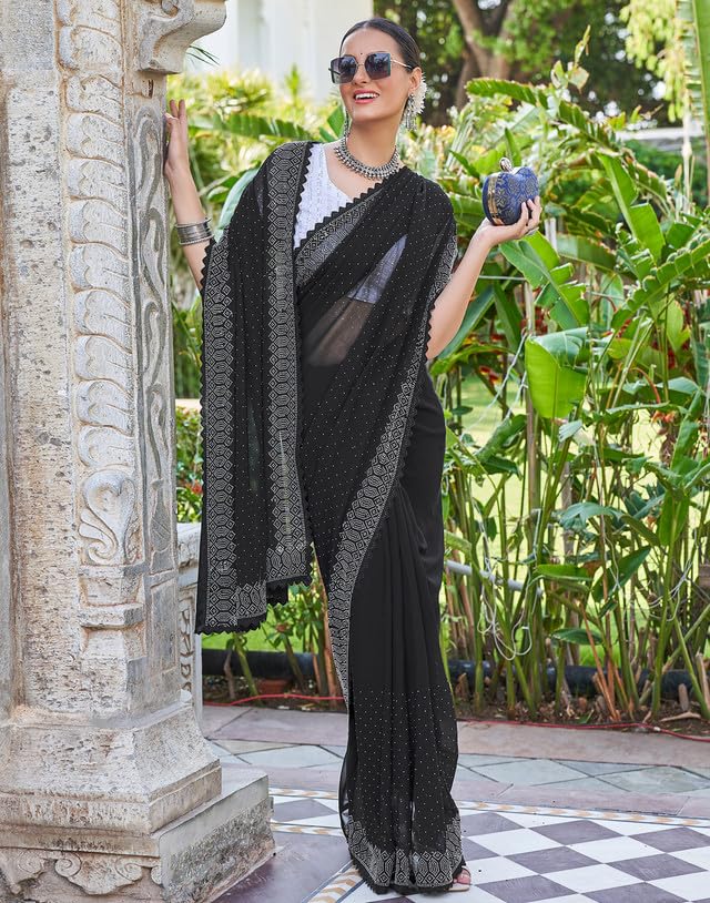 SIRIL Women's Georgette Printed Saree With Unstitched Blouse Piece Combo Pack Of 2