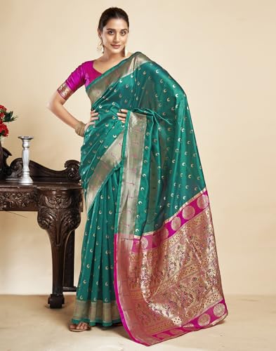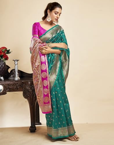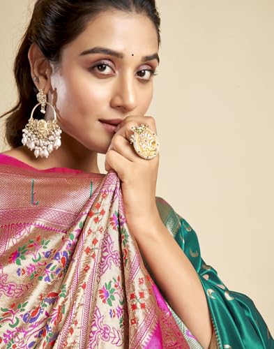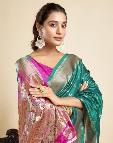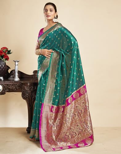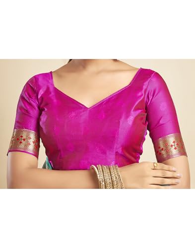 SIRIL Women's Georgette Geometric Printed Satin Stripe Saree With Unstitched Blouse Piece