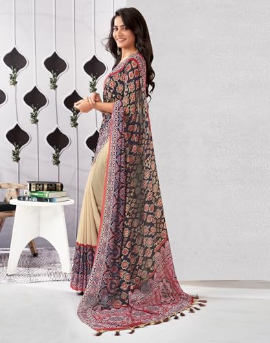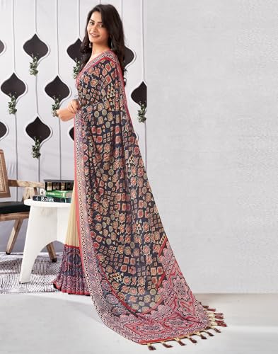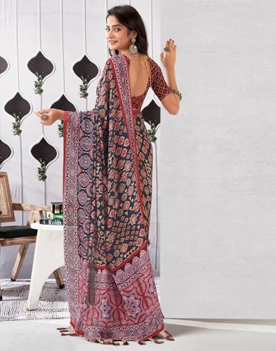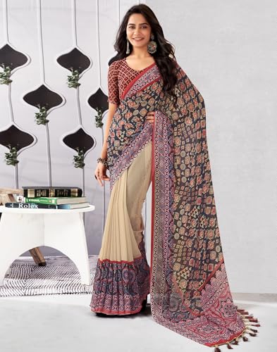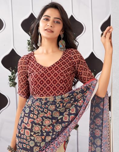 SIRIL Women's Crepe Geometric Printed Saree With Unstitched Blouse Piece