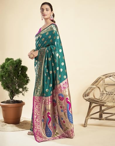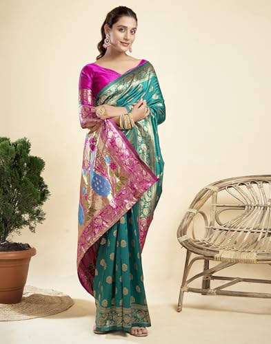 SIRIL Women's Silk Blend Banarasi Jacquard Woven Saree With Unstitched Blouse Piece