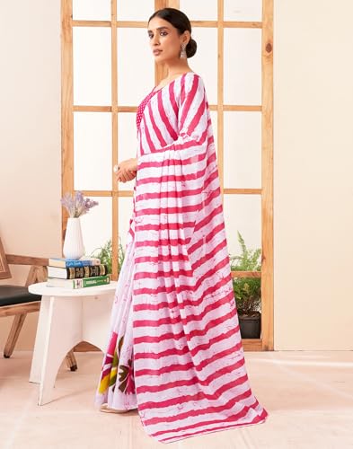 SIRIL Women's Georgette Hot Fixing Stone Work Saree With Unstitched Blouse Piece