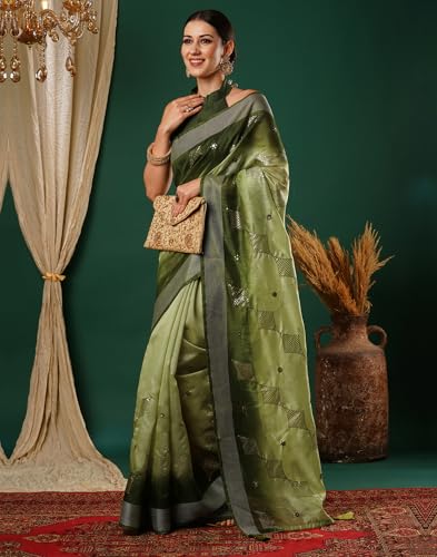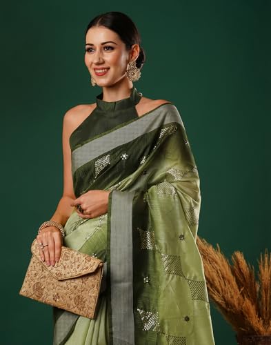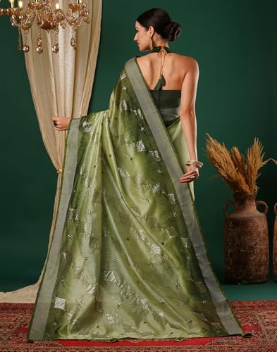 Womanista Women's Net Embroidered Saree (TI6565_Cream)