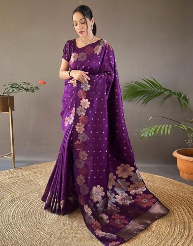 SIRIL Women's Kanjivaram Banarasi Silk Saree For Festival Wedding Silk With Rich Pallu Design Sarees For Women With Unstitched Blouse Piece