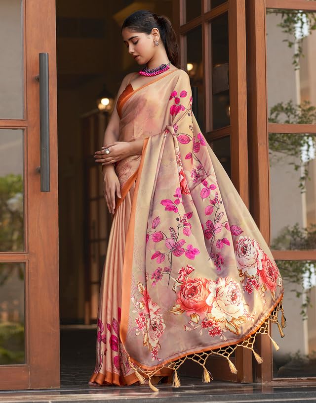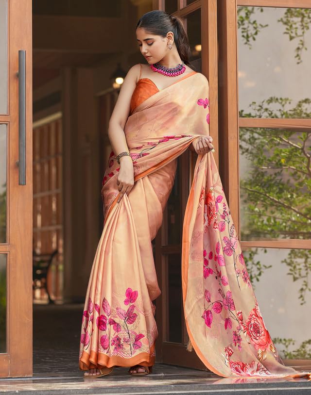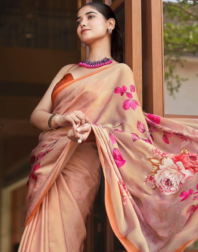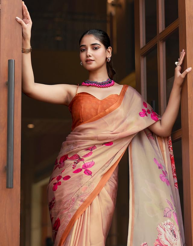 SIRIL Women's Bandhani Printed Chiffon Saree with Blouse