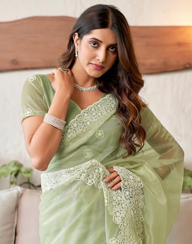 SIRIL Women's Printed Pure Cotton Saree with Unstitched Blouse Piece