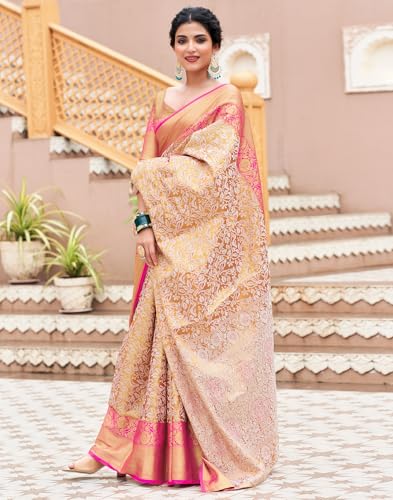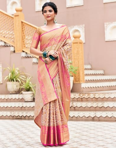 SIRIL Women's Cotton Floral Printed Zari Border Saree With Unstitched Blouse Piece