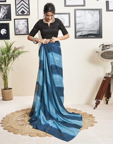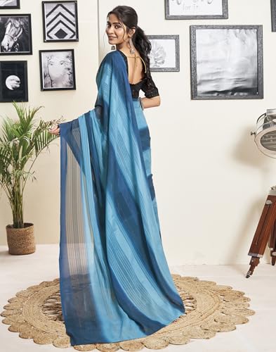 Sidhidata Textile Combo of 2 Women's plain Solid pure Georgette Saree With Unstitched Blouse Piece (Pack of Two) (Combo plain black-royal blue_Black & royal blue_Free Size)