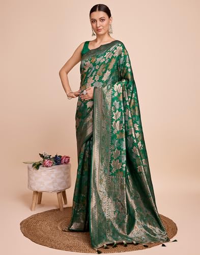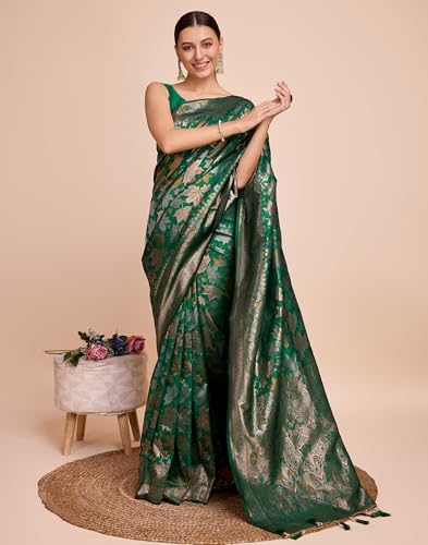 SIRIL Women's Printed Cotton Saree with Unstitched Blouse Piece