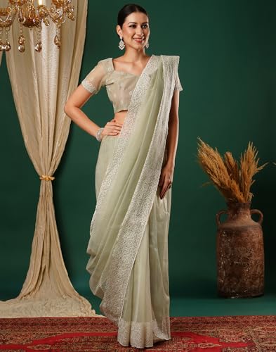 SIRIL Georgette Foil Printed Saree for Women With Unstitched Blouse Piece