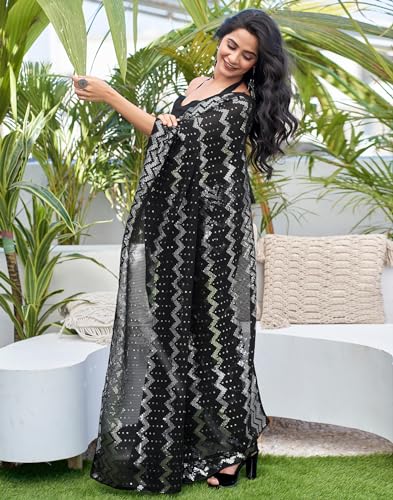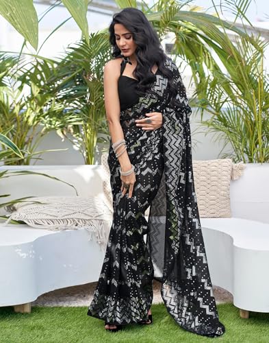 SIRIL Silk Crepe Printed Saree for Women With Unstitched Blouse Piece