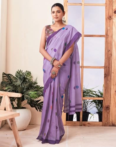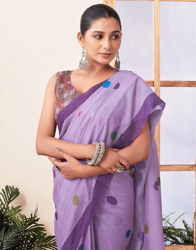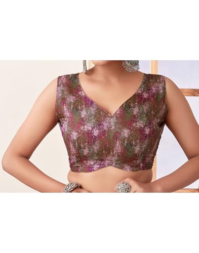 SIRIL Women's Printed Organza Saree with Unstitched Blouse Piece