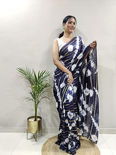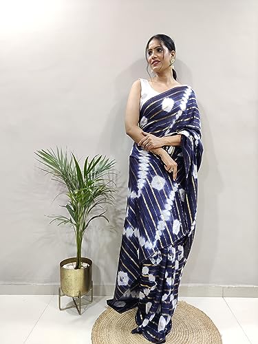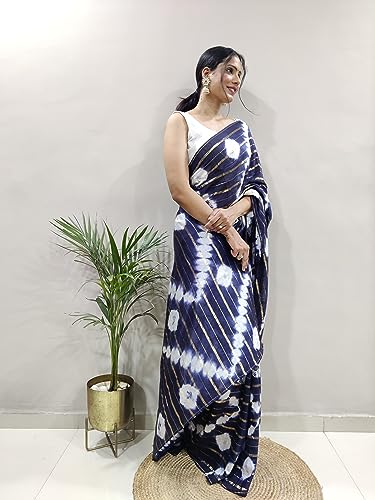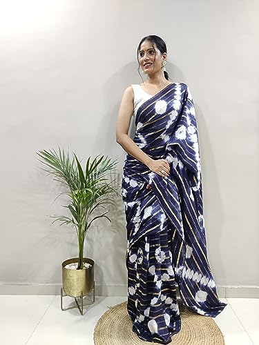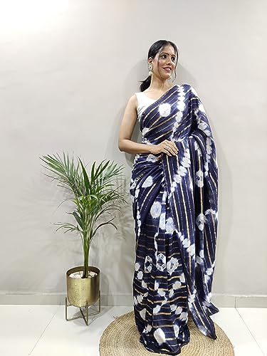 SIRIL Women's Crepe Geometric Printed Saree With Unstitched Blouse Piece