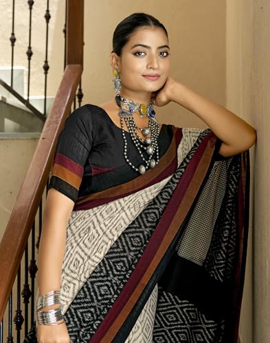 Sidhidata Women's Pure Cotton Linen Copper Zari Boarder & Pallu Butti Work Saree With Unstitched Blouse Piece (Bundi)