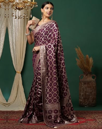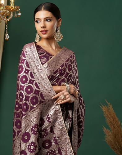 SIRIL Women's Georgette Dual Shade Ready to Wear One Minute Pre Pleated Saree With Unstitched Blouse Piece