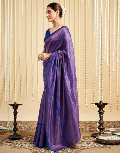 SIRIL Women's Vichitra Silk Embroidery Stone Work Saree With Unstitched Blouse Piece