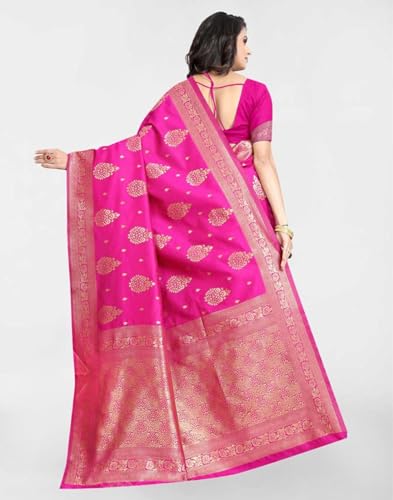 SIRIL Women's Silver Border & Printed Cotton Saree with Blouse