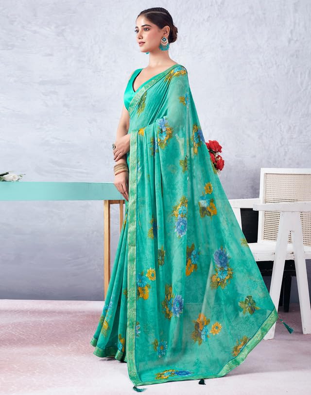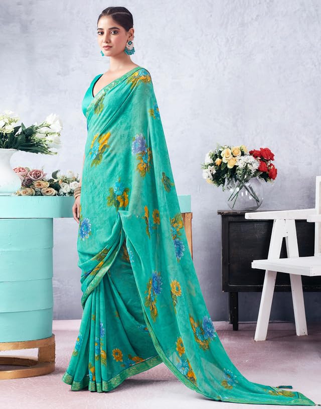 SIRIL Women's Georgette Printed Saree With Unstitched Blouse Piece Combo Pack Of 2